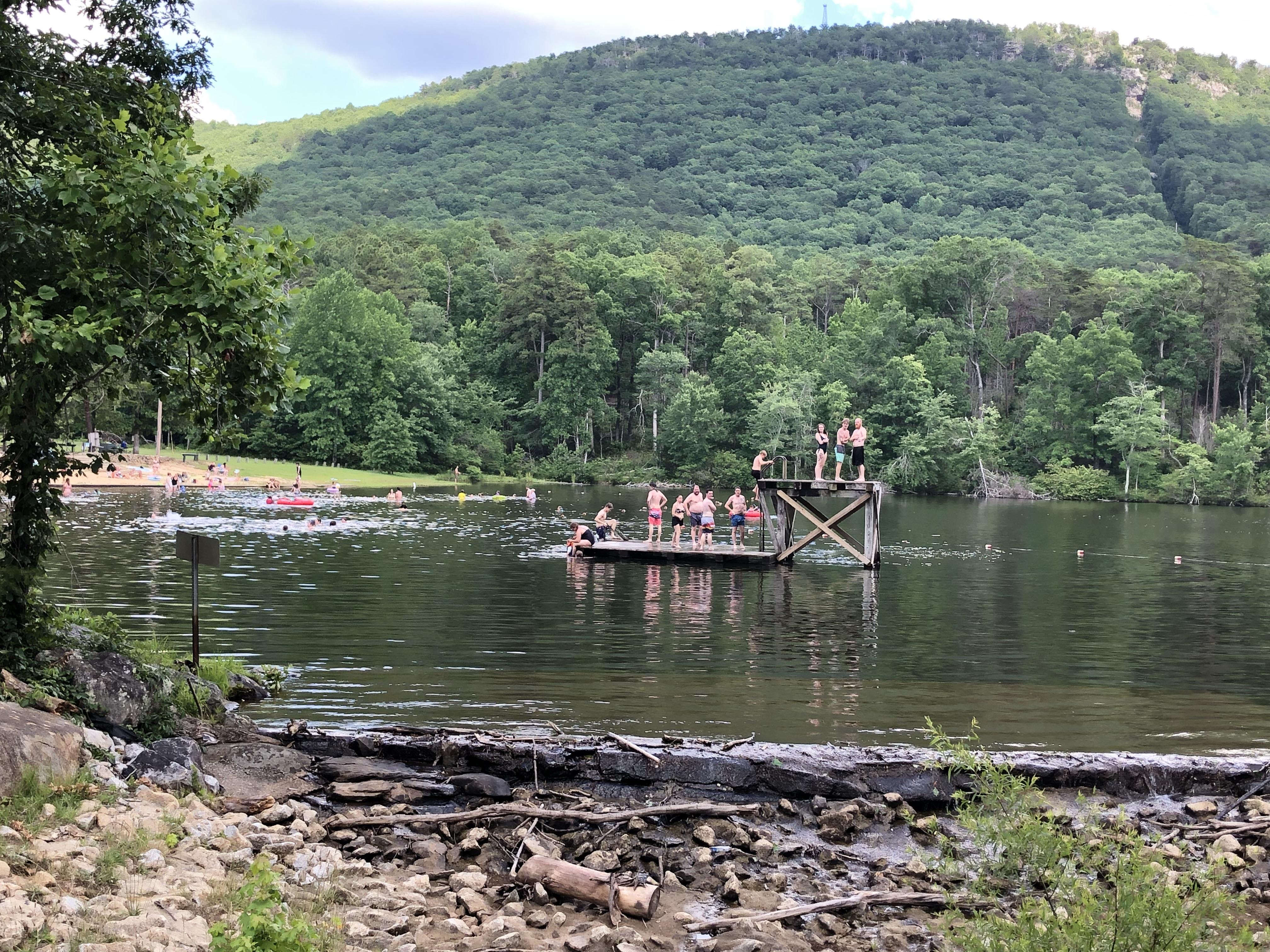 Cheaha Cliffside Pool has been demolished, and is part of the NEW hotel project. The pool will not be returning, but you can both go swimming and fishing in the spring-fed, 6-acre Cheaha Lake.
