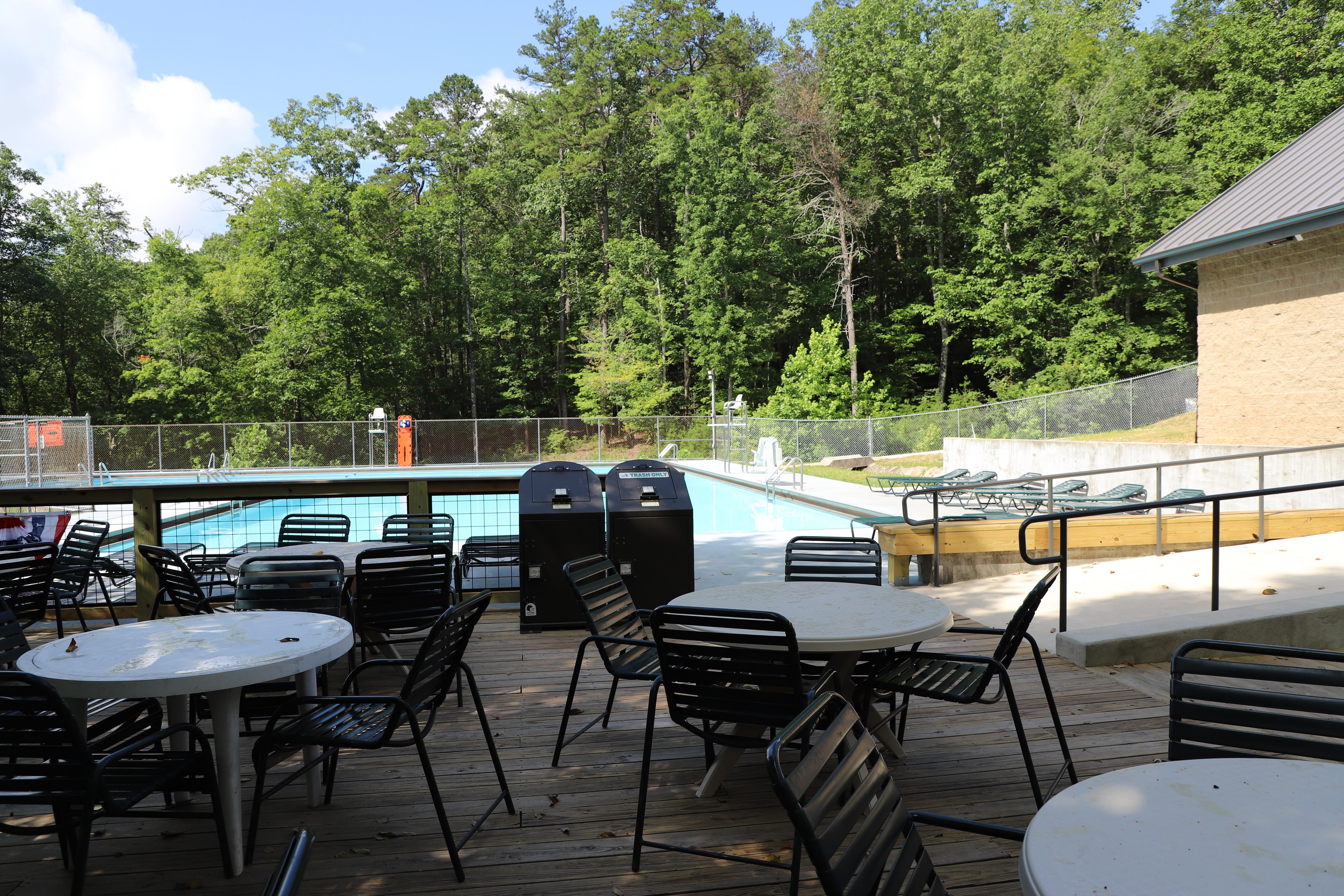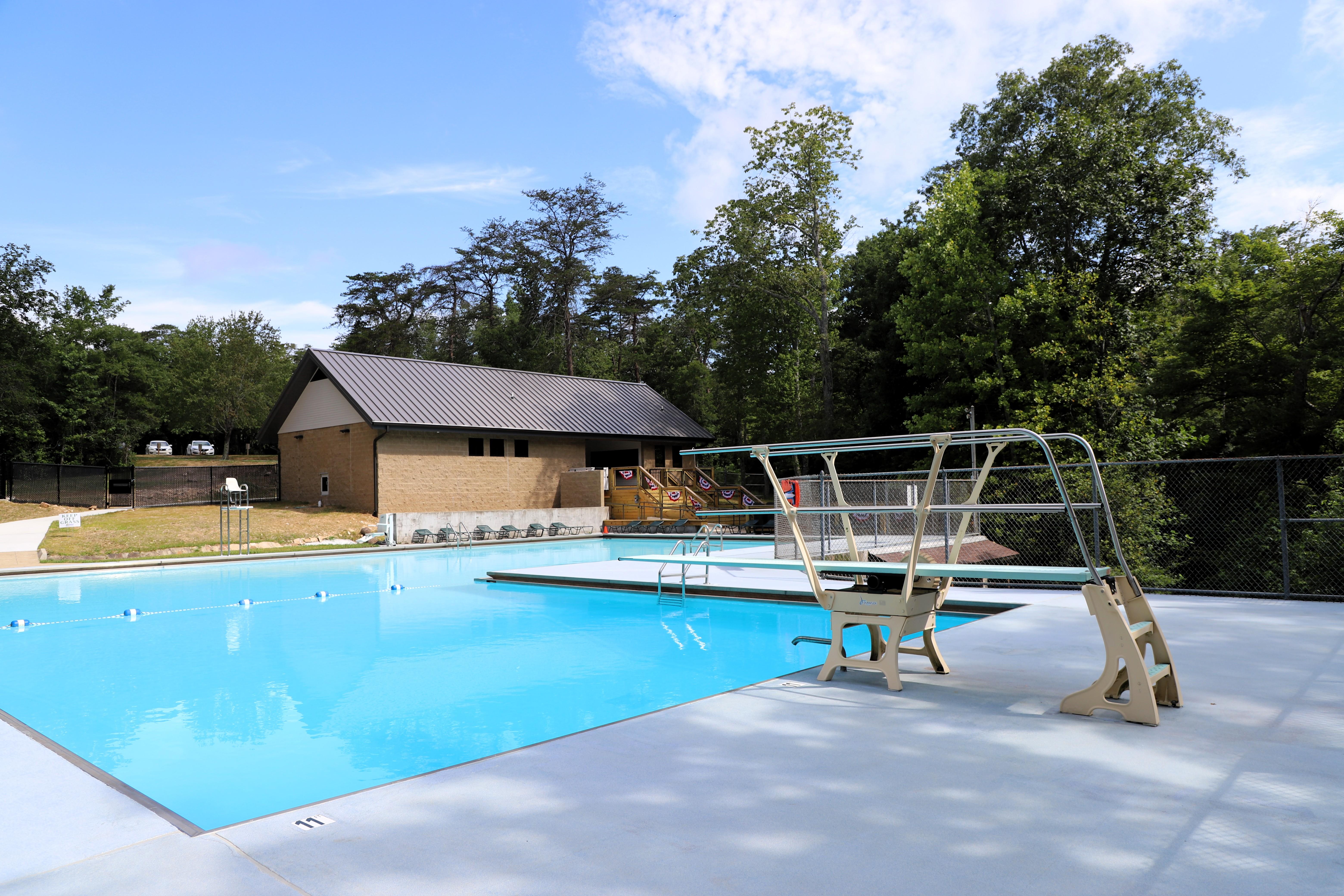 DeSoto State Park's Olympic-size pool is fun for the whole family, complete with a diving board and ADA lift. The pool is close to our picnic area and within 1/2 mile of the Country Store & Information Center. Changing rooms are located at the pool. The pool has lounge chairs and a small deck with tables nearby.