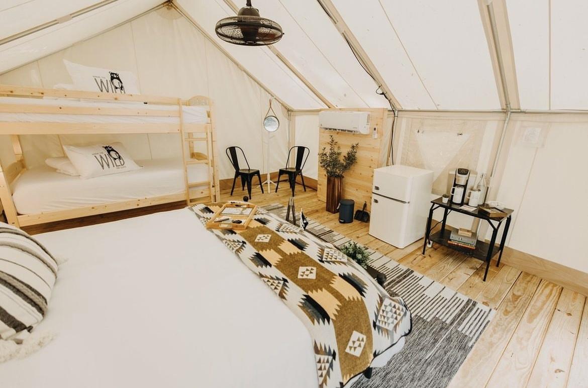 Combining luxury and the great outdoors, these extra spacious completely furnished Safari Tents give large families or groups of friends the extra space they need to glamp in comfort.