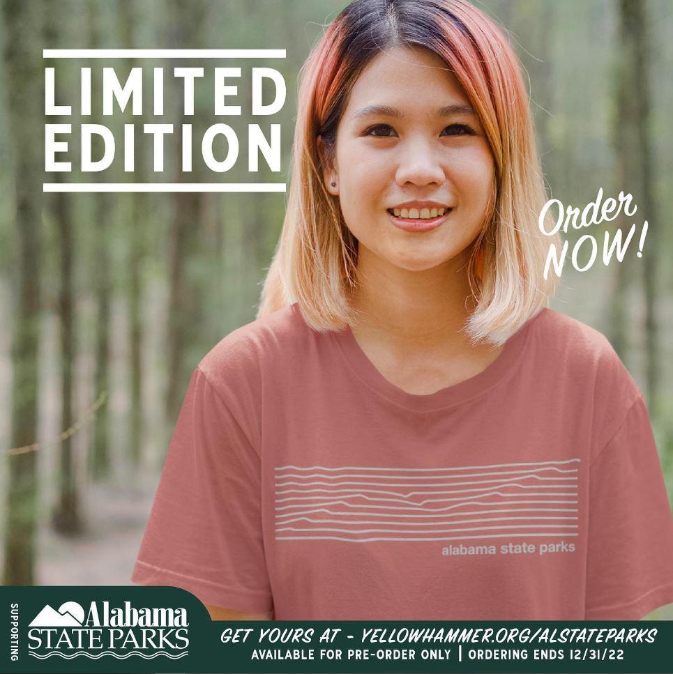 Alabama State Parks is partnering with Yellowhammer Creative to offer a limited-edition preorder program of exciting new apparel and other items. Orders will be accepted through December 31, 2022 and will ship 2-3 weeks later. These will not be available for delivery by Christmas, but we can send you a picture of the item(s) you order to wrap and place under the tree.