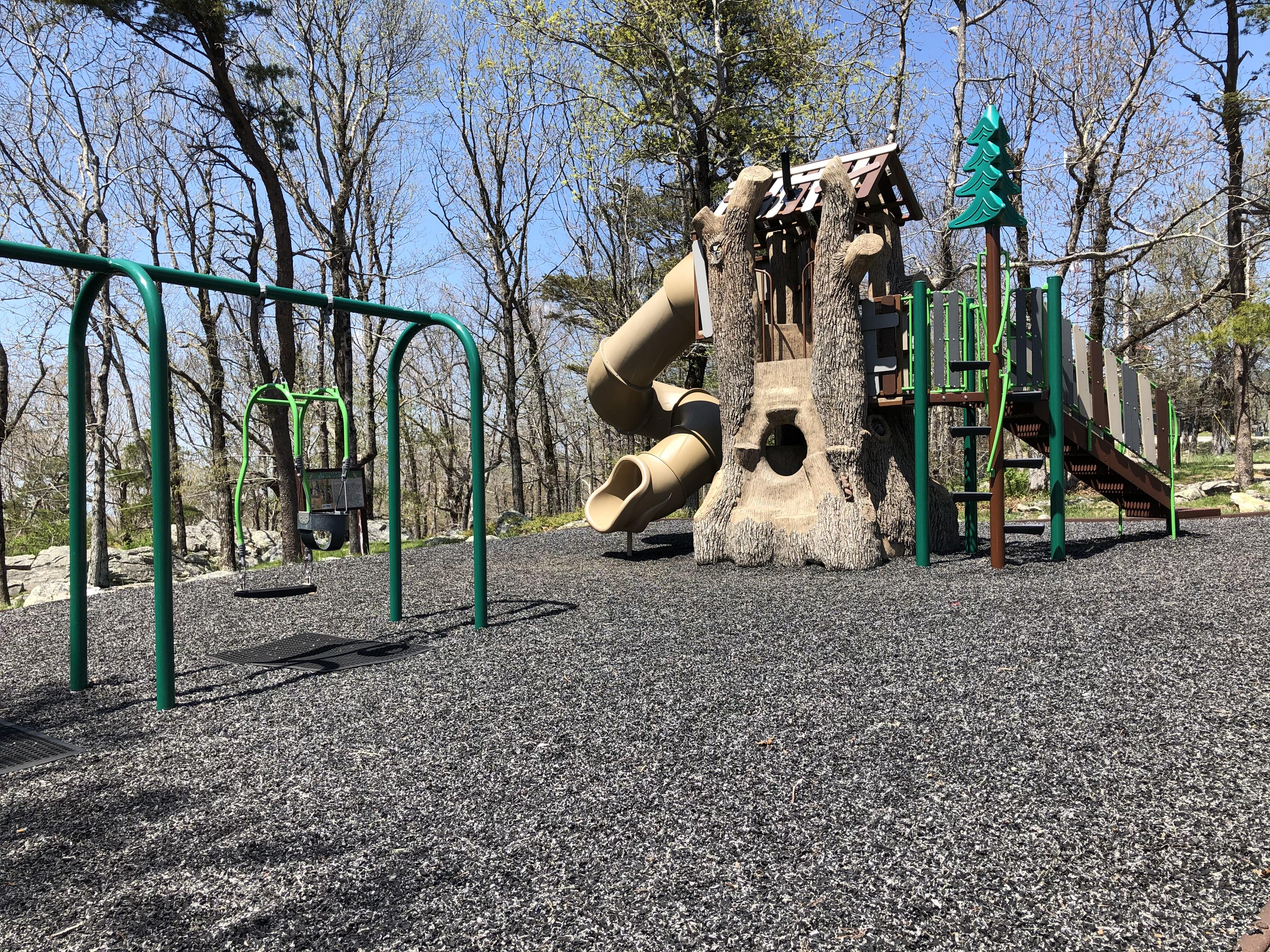 The Imagination Tree is Cheaha’s second playground, joining the Lakeside Playground that is a short walk from the Lower Improved Campground. Families can walk the one-eighth mile interpretive Heritage Trail to Bunker Tower – the highest point in the state – to the Civilian Conservation Corps Museum, the Leave No Trace Bigfoot Pavilion, the Mike Bosarge Memorial Dog Park and to the Imagination Tree Playground. The new playground’s surface is made from International Play Equipment Manufacturers Association certified recycled, shredded rubber mulch.