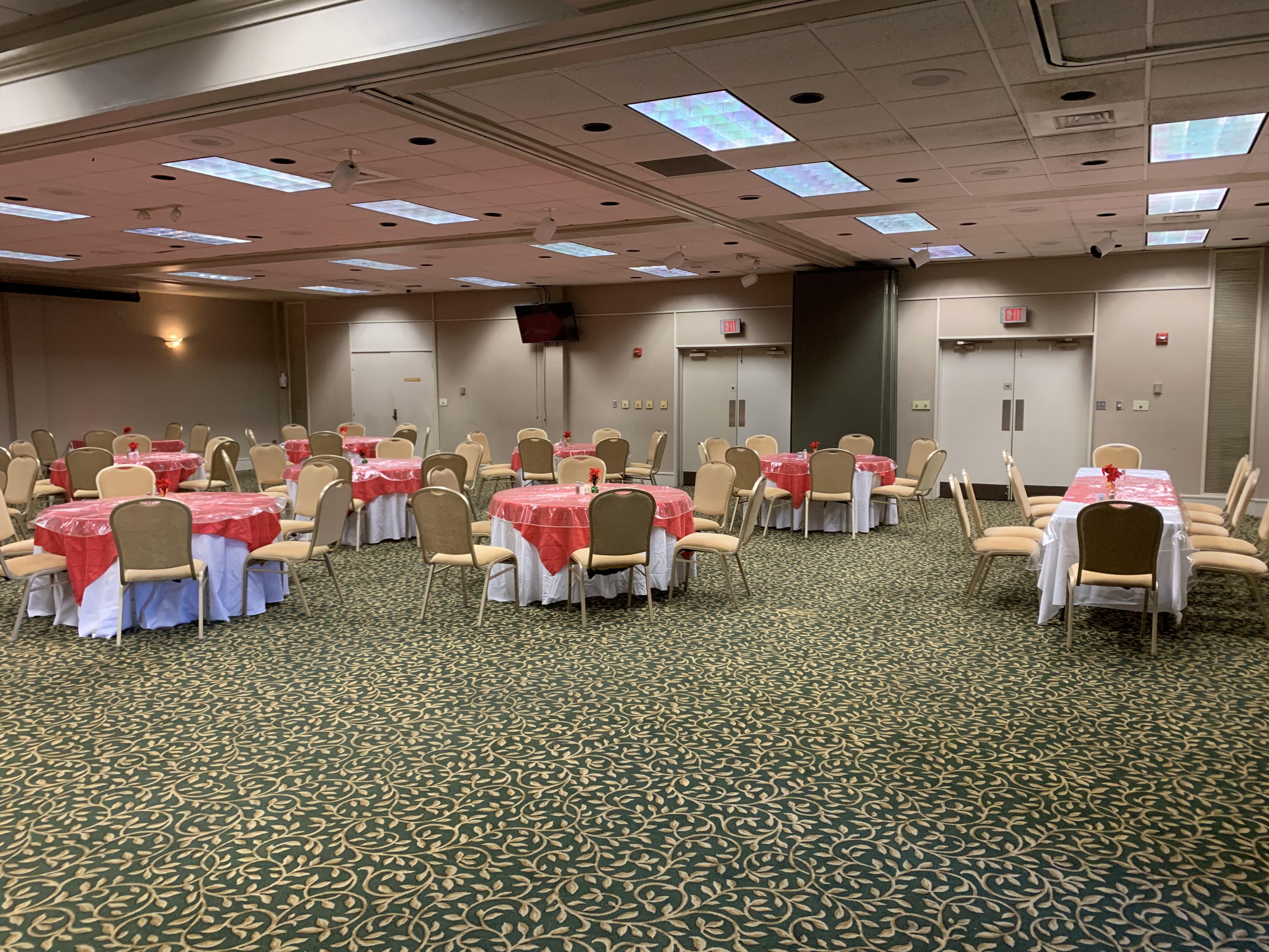 The Cedar & Willow Room combined with the Cypress Room makes up our Convention Center. The Convention Center walls can be removed for one large space, or you may choose to use one space for ceremony and the other space for reception. Holds up to 300 guests for a reception/banquet, 200 classroom seating, and 500 theater seating.