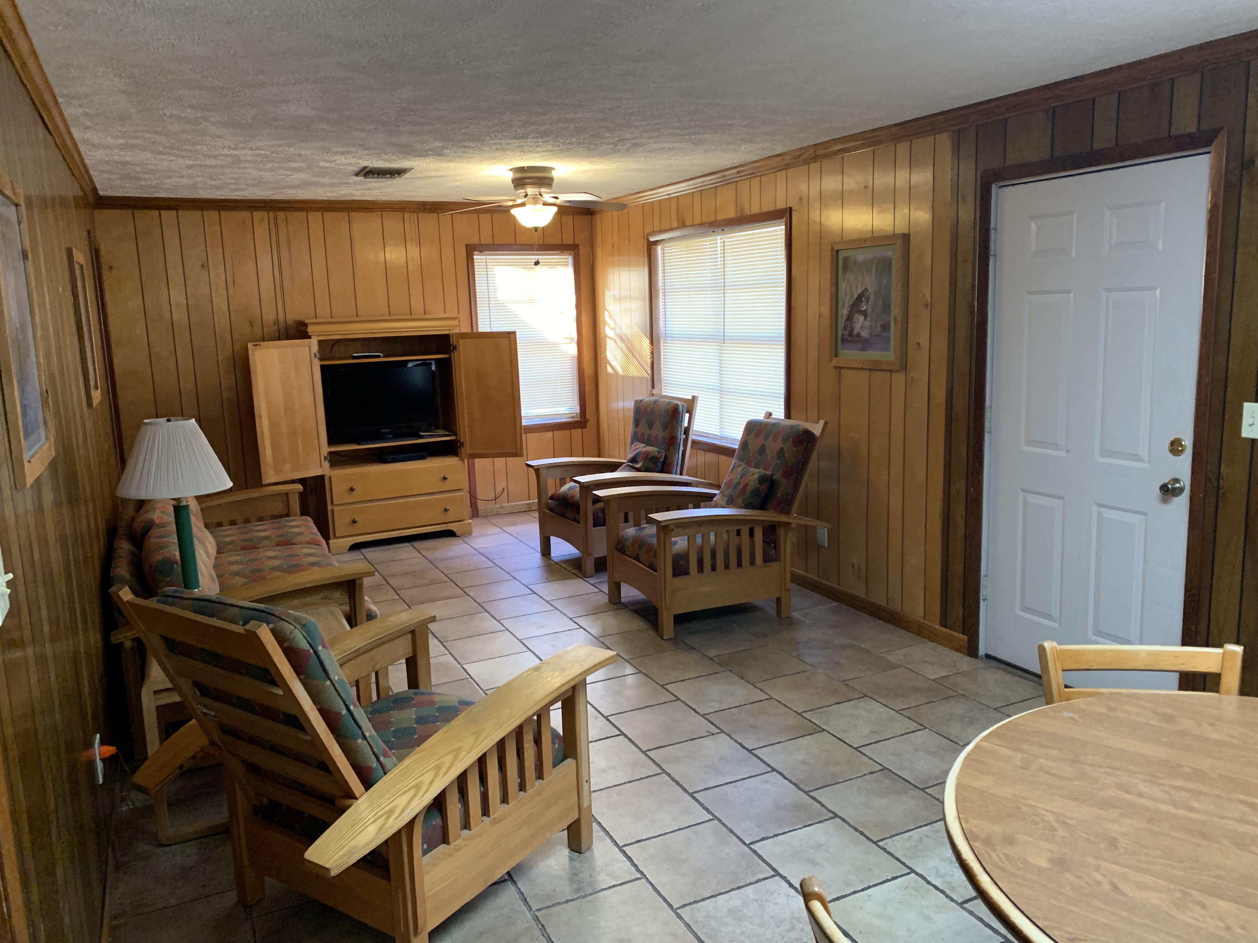 The Fisherman's Cabin is located close to the boat launch at First Creek. It has outside hook ups to charge boat batteries and a circle drive with ample parking. It has a full kitchen, a dining room/living room, 1 bathroom with a shower and two bedrooms with1 full and two twin beds, perfect for a family get-a-way or a fishing trip with friends. This cabin is a pet friendly accommodation. The cabin is equipped with basic housekeeping and cooking supplies. Linens are provided. The cabin has a TV with basic Dish Network programing.