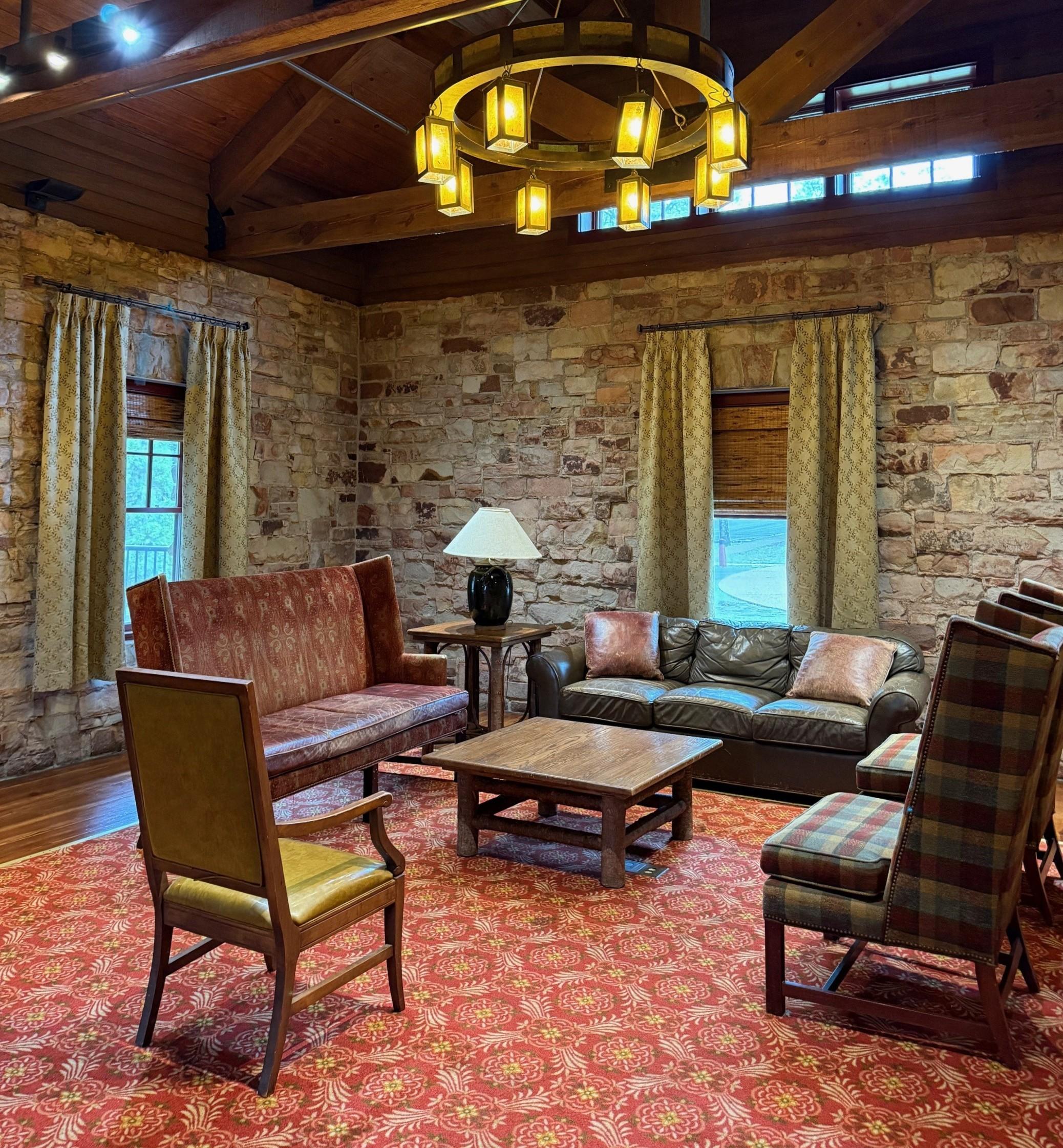 Oak Hall is the primary event space in the Lodge. It is ideal for banquet dinners, wedding receptions, and large conference groups. This room is also equipped with two large hearths to warm your Christmas party, fall celebration, or winter wedding. Use of Fearn Hall, Viduta, and the catering kitchen is included in the rental cost.