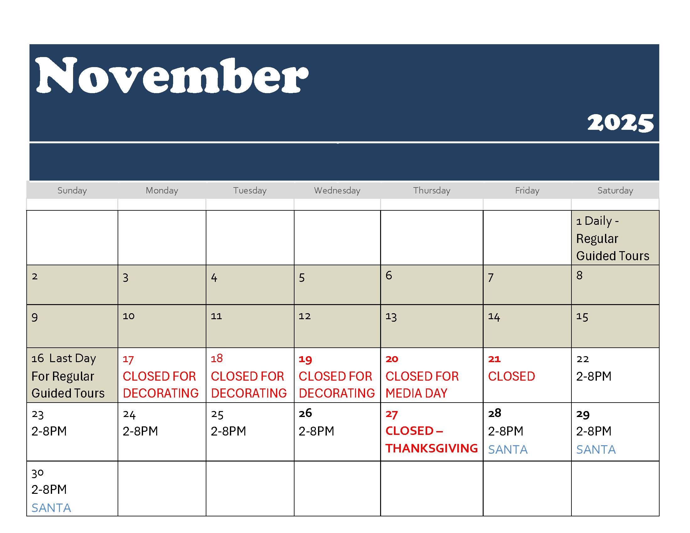 Join us for a truly magical experience when we transform the cave into an underground winter wonderland. The cave maintains a constant temperature of around 62 degrees year-round, making it the perfect environment to enjoy even on cold days. The gift shop will be decorated for the occasion and offer a selection of unique gifts, ornaments, snacks, and hot cocoa for purchase. The 110 stairs at the end of the regular tour will be excluded during this time, making the walk easier for anyone with mobility issues. There will be approximately 30 stairs and a 1-mile walk through the cave.